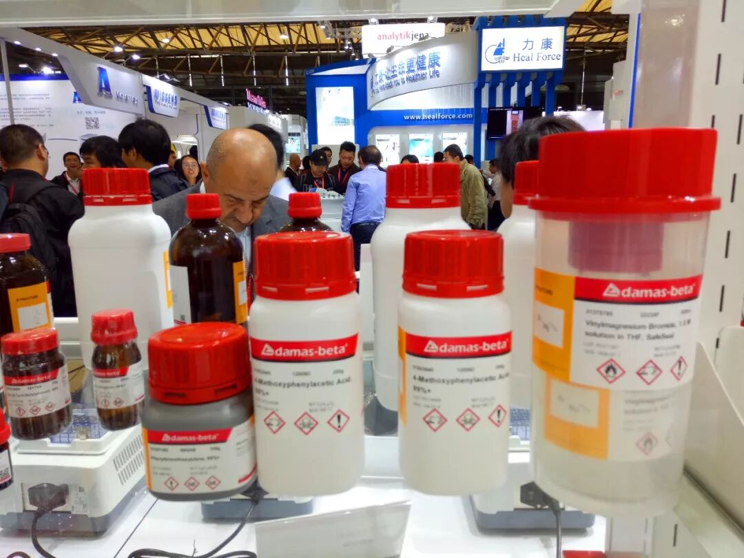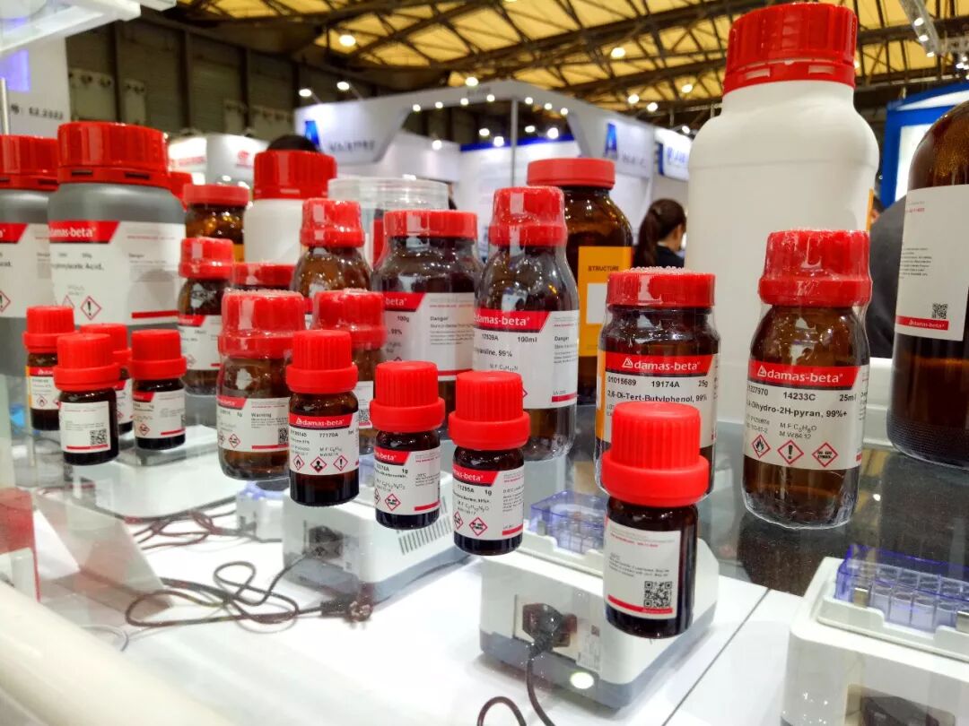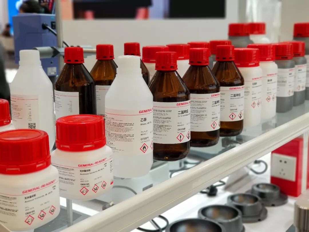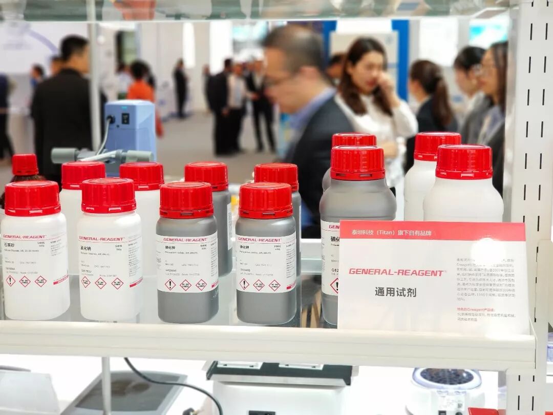 这次展会,泰坦自主产品线家族几乎全部出动。Adamas-beta/高端试剂、General-Reagent/通用试剂、Titan/实验耗材、Titan/通用仪器等,展品50多箱,总量近1000件。