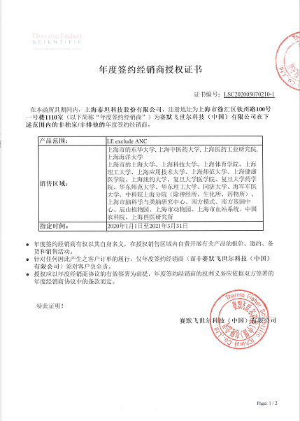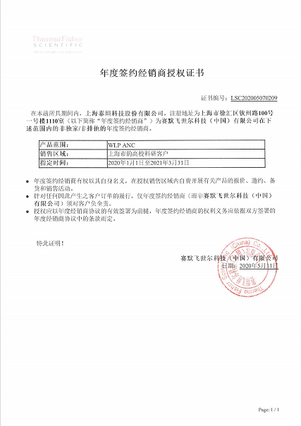 2020年1月1日,泰坦科技(Titan)正式成为赛默飞世尔科技(下文简称“赛默飞”)LSC事业部实验室仪器LED产品线在上海高校科研系统的授权代理商,负责该区域内该产品线的市场推广、销售及售后服务。8月4日起,授权区域新增了上海东华大学、上海中医药大学、上海医药工业研究院及上海海洋大学,总计27个以上的上海高校及中科院系统研究所,基本涵盖了上海90%以上的高校科研领域。