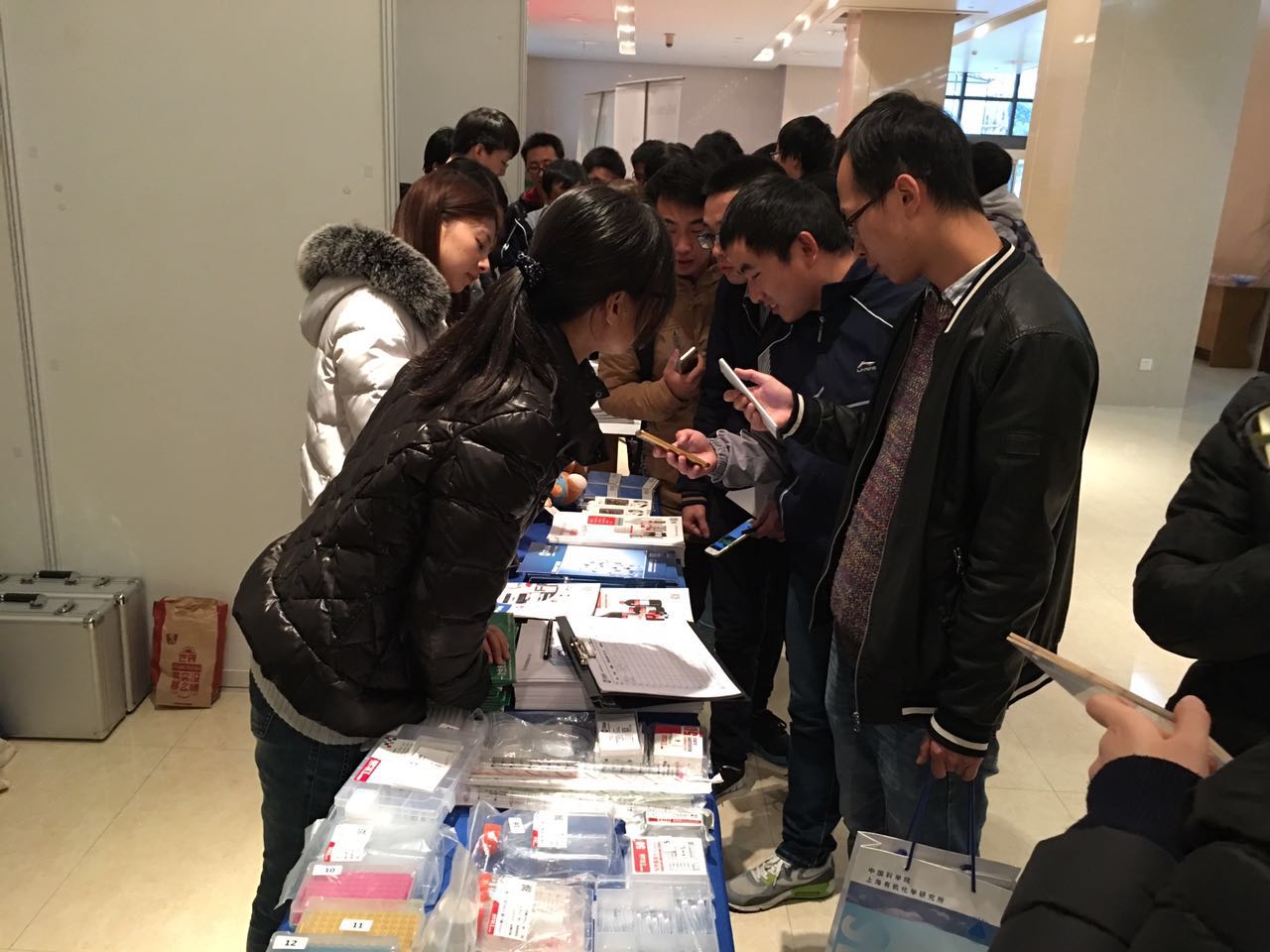 虽然【探索平台】走进中科大时间不长,但知道泰坦科技(Titan)的小伙伴却不在少数。展台前,围满老师、同学前来参观,询问最新产品动向和优惠活动。很多老师主动留下地址和邮箱,申请样品作为试用。