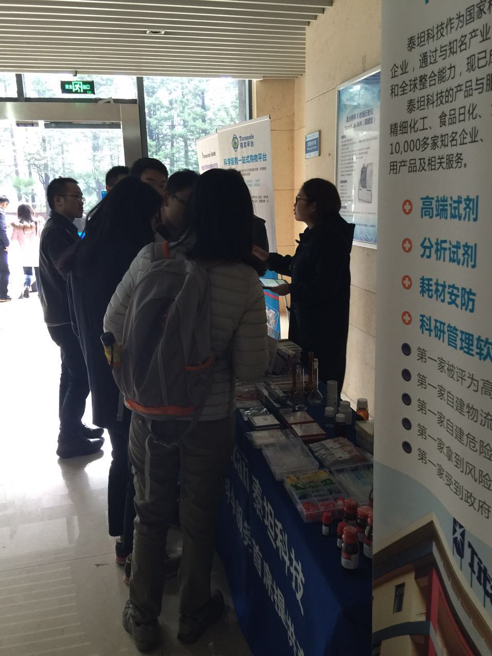 11月17日,泰坦科技(Titan)首次走进中国科学技术大学,工作人员现场介绍了旗下自有品牌:Adamas-bate/阿达玛斯试剂、General-Reagent/通用试剂、Titan/泰坦耗材等一系列产品,并重点宣传阿达玛斯论文奖。